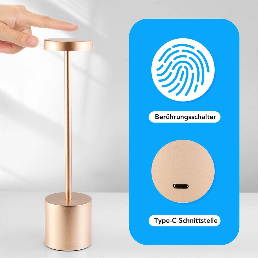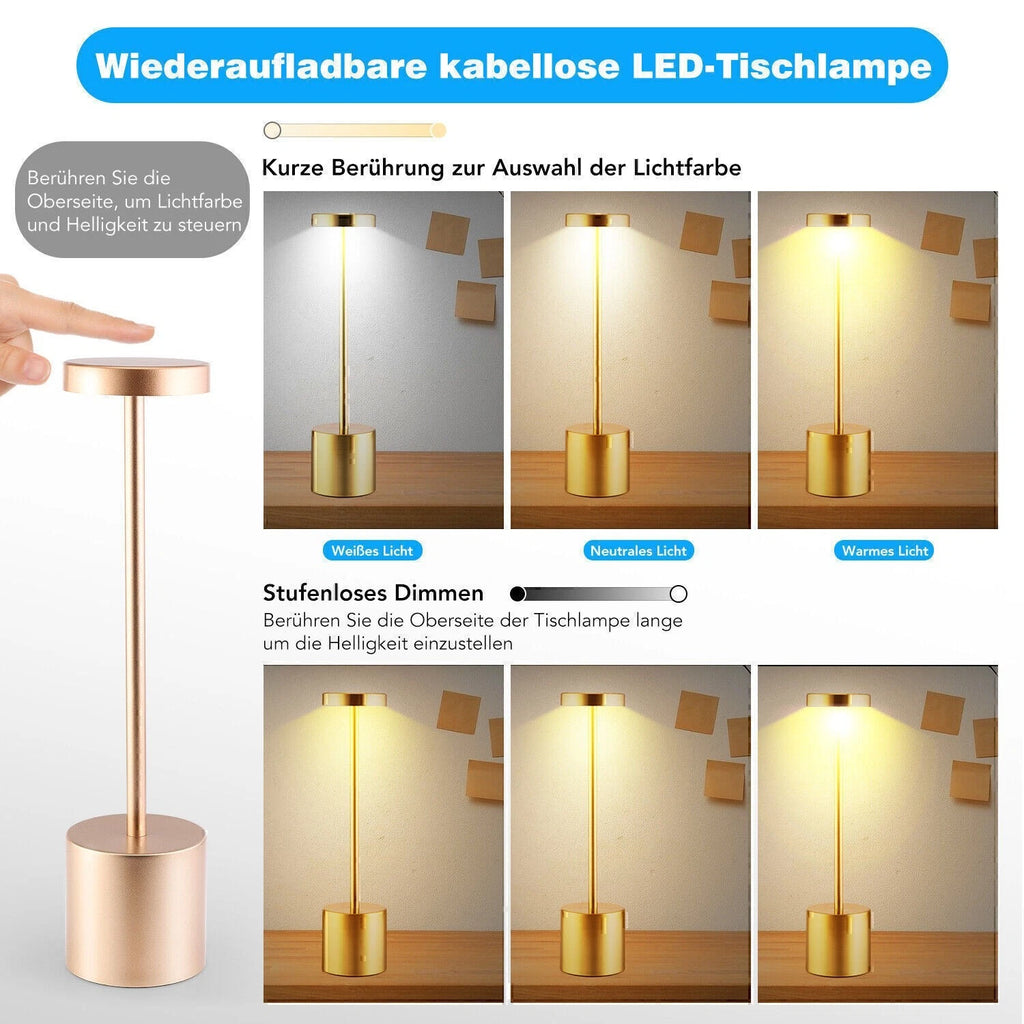 LED kabellose Designer-Tischlampe. Lampe mit Dimmung. Akkubetrieb. Nachttisch, Gartentisch. Exklusiv. Touch-Funktion