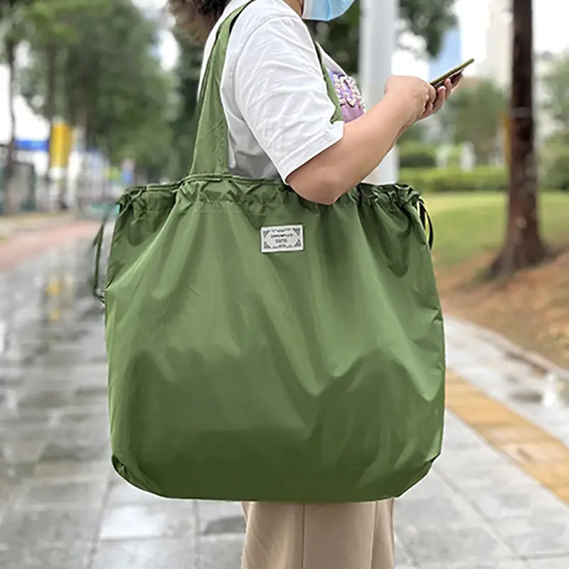 Große Faltbare Einkaufstasche – Wiederverwendbare Tragetasche mit Kordelzug und Schulterriemen
