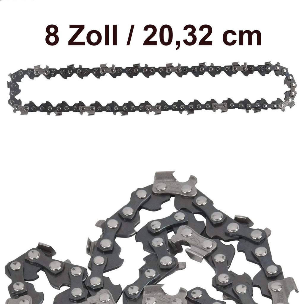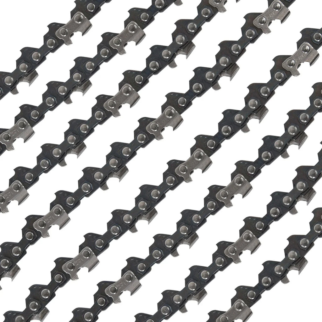Die Ketten sind in verschiedenen Längen von 4 bis 14 Zoll erhältlich. So kann dieselbe Säge flexibel mit unterschiedlichen Schwertlängen ausgestattet werden. Bitte prüfen Sie vor dem Kauf die technischen Daten Ihrer Maschine, um die Kompatibilität sicherzustellen.