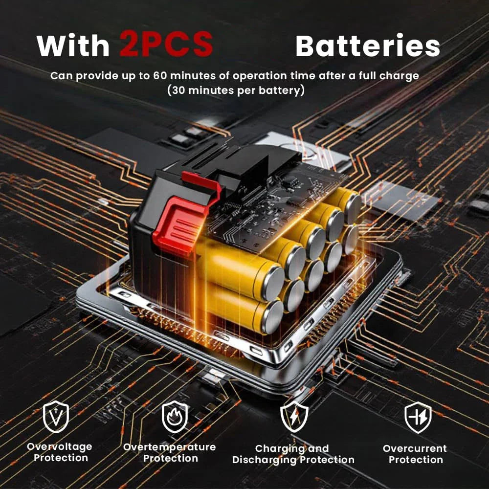 🔋 2× 48V Akkus – bis zu 40 Minuten Laufzeit