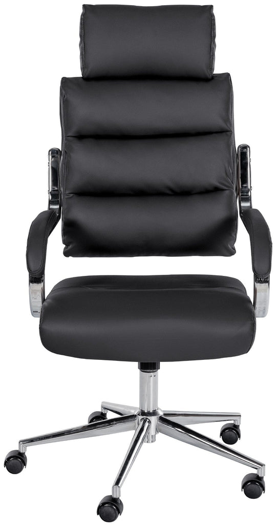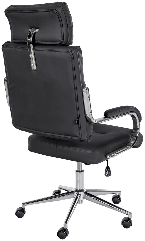 Die extra dicke Polsterung an Sitzfläche, Rückenlehne, Kopfstütze und Armlehnen sorgt für ein dauerhaft komfortables Sitzgefühl – ideal für lange Arbeitstage. Die integrierte Kippfunktion ermöglicht entspanntes Zurücklehnen; die Spannung der Mechanik kann per Handkurbel individuell angepasst werden.