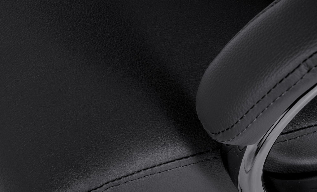 Der Bezug aus hochwertigem Bycast-Leder ist strapazierfähig, pflegeleicht und langlebig. Über den robusten Gaslift lässt sich der Stuhl stufenlos in der Höhe verstellen. Fünf leichtgängige Gummi-Hartbodenrollen sorgen für optimale Beweglichkeit.