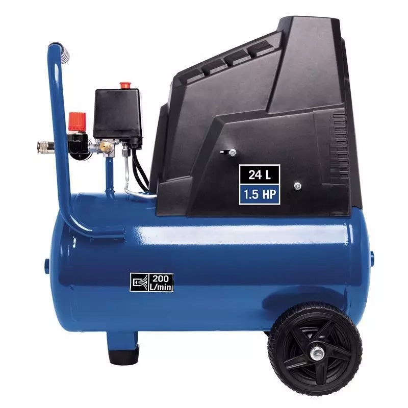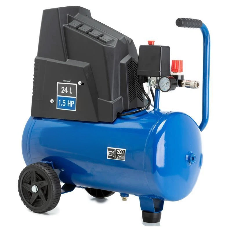Mit seinem 24-Liter-Kessel, 200 L/min Ansaugleistung und bis zu 8 bar Arbeitsdruck schafft der HC25o zuverlässig alles, was im Haushalt, in der Garage und in der Werkstatt anfällt. Durch seine ölfreie Technik ist er besonders wartungsarm und sauber im Betrieb – einfach anschließen und sofort nutzen.