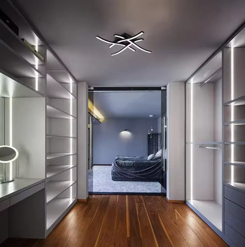 Das klare, minimalistische Design wirkt stilvoll und unaufdringlich. Die einzigartige Form aus vier gekreuzten LED-Streifen setzt moderne Akzente und fügt sich harmonisch in nahezu jedes Wohnkonzept ein – ob Wohnzimmer, Flur, Schlafzimmer oder Büro.