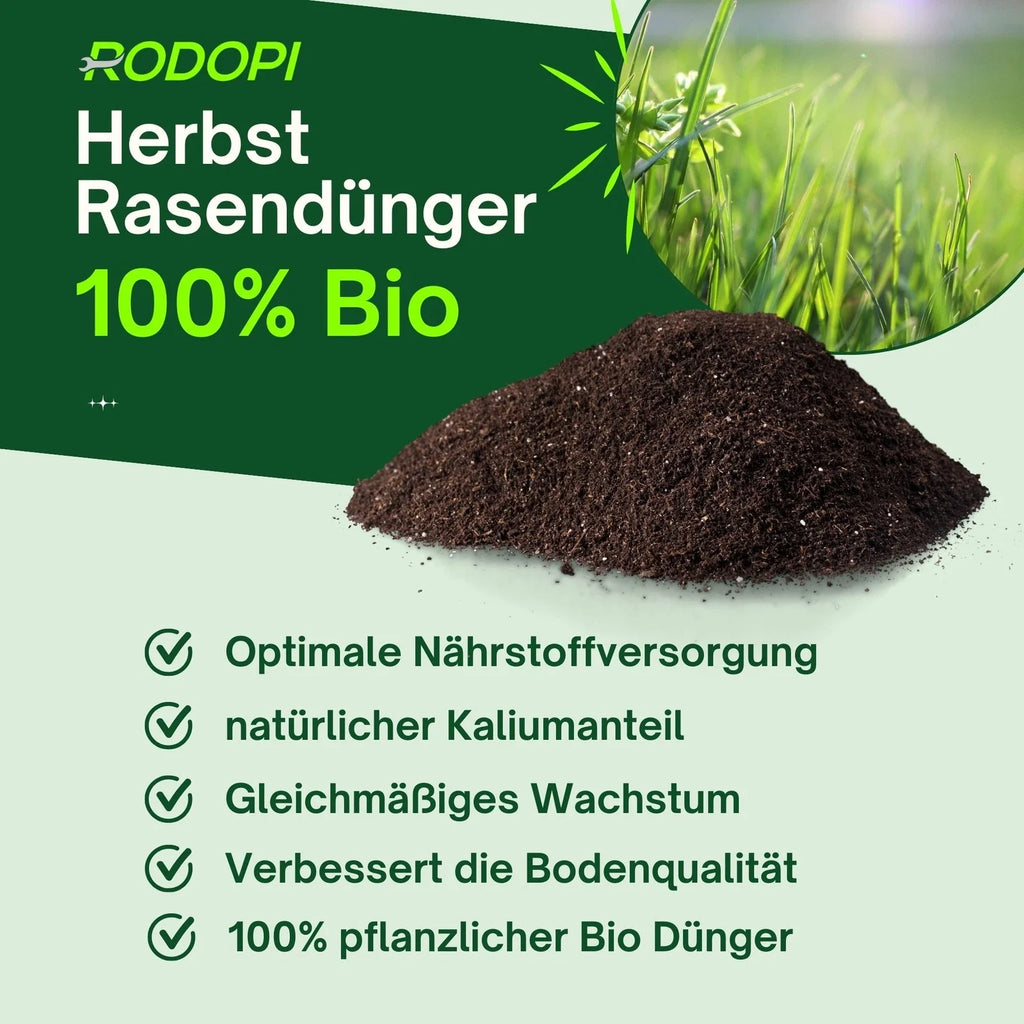 100 % Pflanzlicher Bio Herbstrasendünger – Kaliumreich, staubarmes Granulat