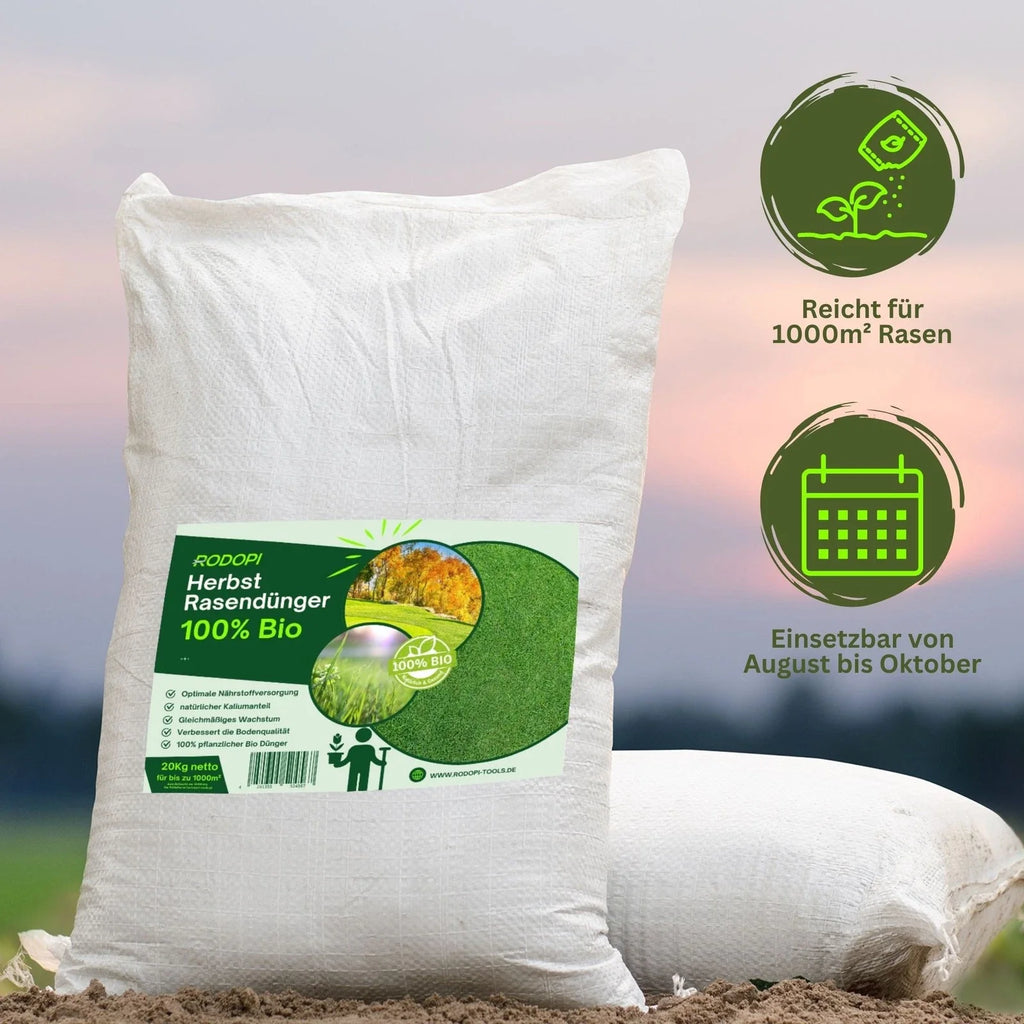 Bereiten Sie Ihren Rasen optimal auf die kalte Jahreszeit vor! Unser 100 % pflanzlicher Herbstrasendünger liefert eine leistungsstarke Kalium-Formel, die Ihrem Grün vor Frost schützt und im Frühjahr mit voller Kraft durchstarten lässt. Das staubfreie Granulat ermöglicht eine gleichmäßige Verteilung – perfekt für manuelles Ausbringen oder mit dem Streuwagen.