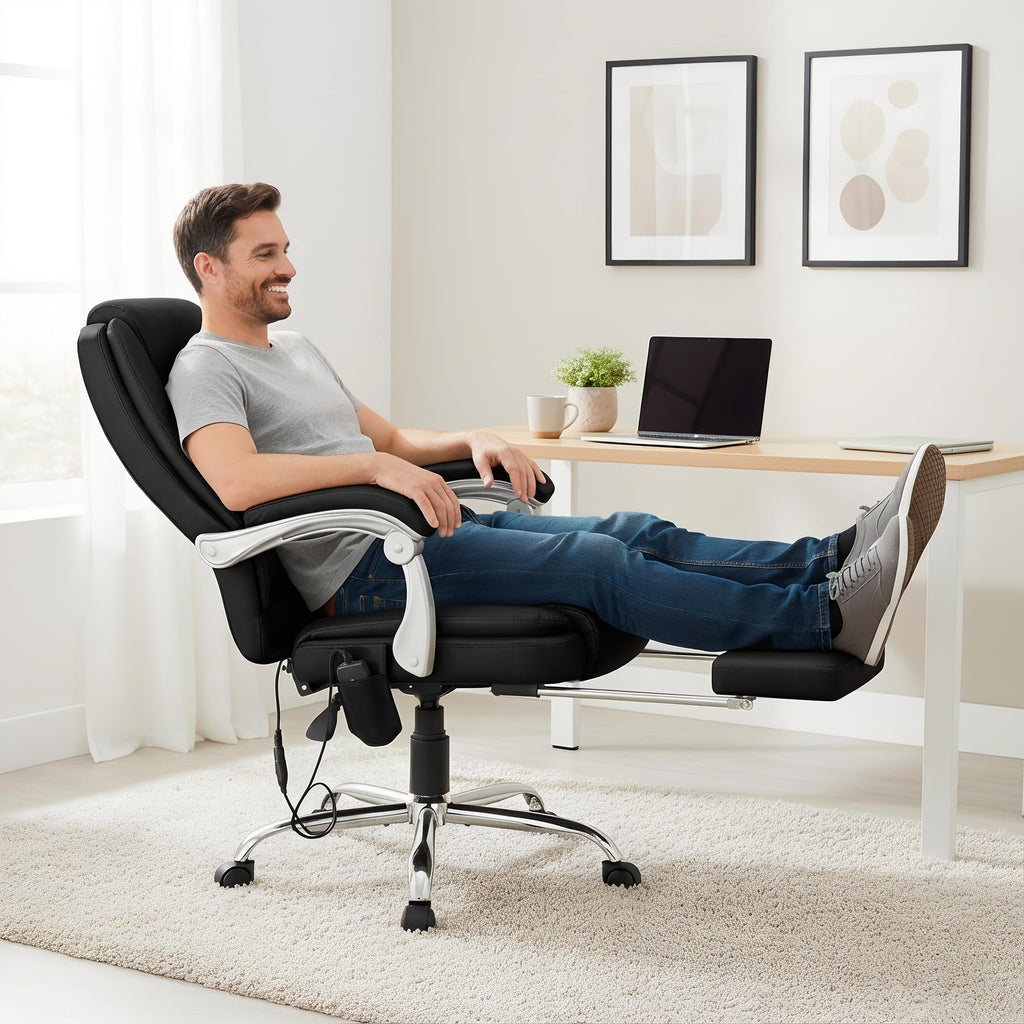 Massagesessel als Leder-Chefsessel RUBIN mit Liegefunktion. Bis 150 kg.