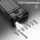 - Integrierte LED-Notfallleuchte mit drei Leuchtmodi.