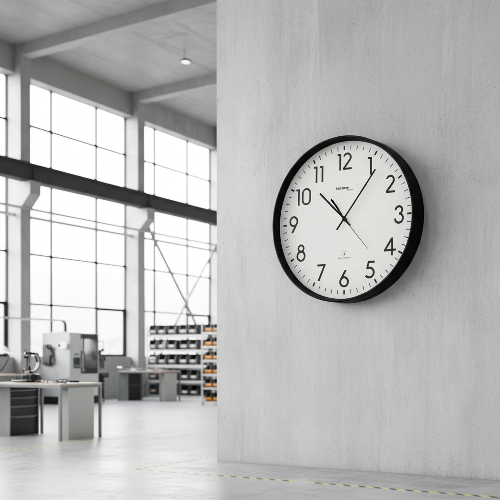 Das schlichte, zeitlose Design mit Aluminiumgehäuse wirkt modern und professionell zugleich und fügt sich harmonisch in nahezu jede Umgebung ein. Die klar gestalteten Ziffern und Zeiger sorgen für eine schnelle und intuitive Zeiterfassung – auch aus der Ferne.